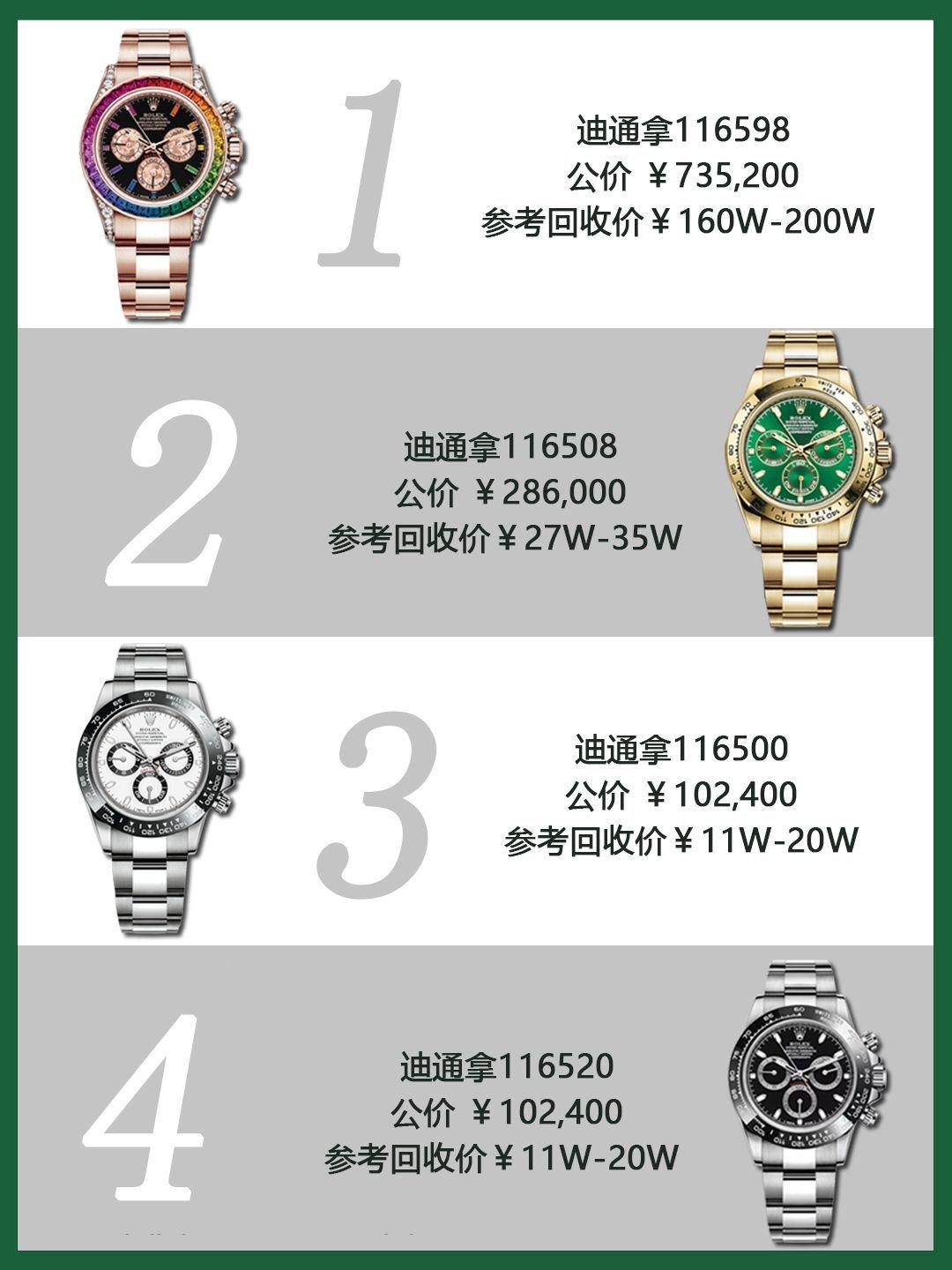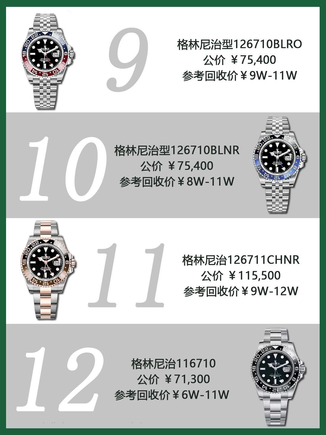 前几天上门回收一位客户的绿水鬼,表成色很不错,配件也是全套。心理价想要15W......绿水鬼最贵的时候炒到了18W,现在二手行情稳定,目前最多也只能超公价3W左右。既然说到溢价,那就顺便给大家盘点劳力士另外的11只溢价表(非拍卖款)